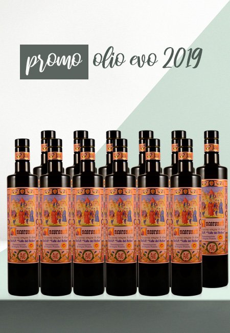 2 cartoni di olio EVO – annata 2019 – per un totale di 12 bottiglie, al prezzo di un cartone. 12 bottiglie da 750 ml al prezzo di 6!